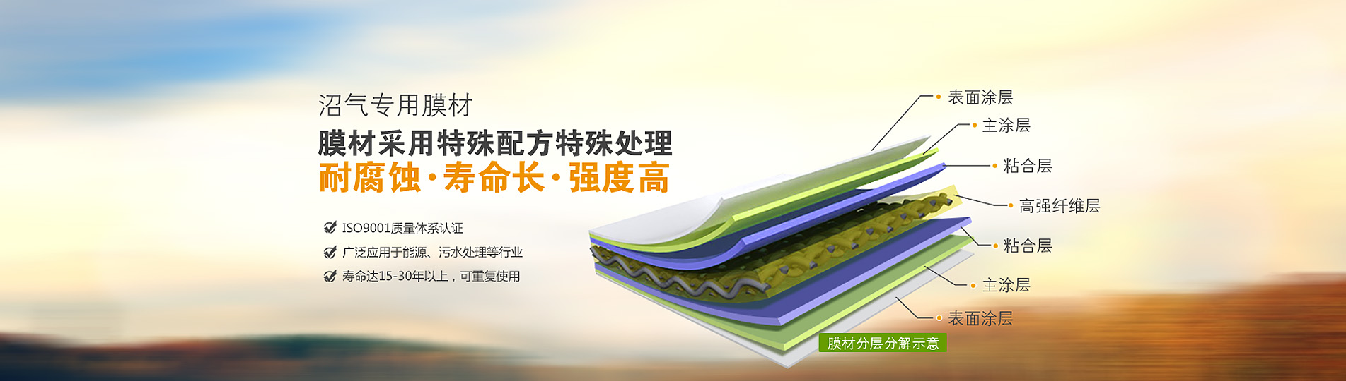 ● 雙膜氣柜材料同時(shí)具有抗沼氣腐蝕、抗紫外線和微生物的功能。常規(guī)使用壽命在10—25年以上,期間無需防腐處理.